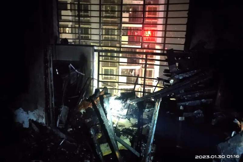 邻居燃放的烟花火星飞入阳台