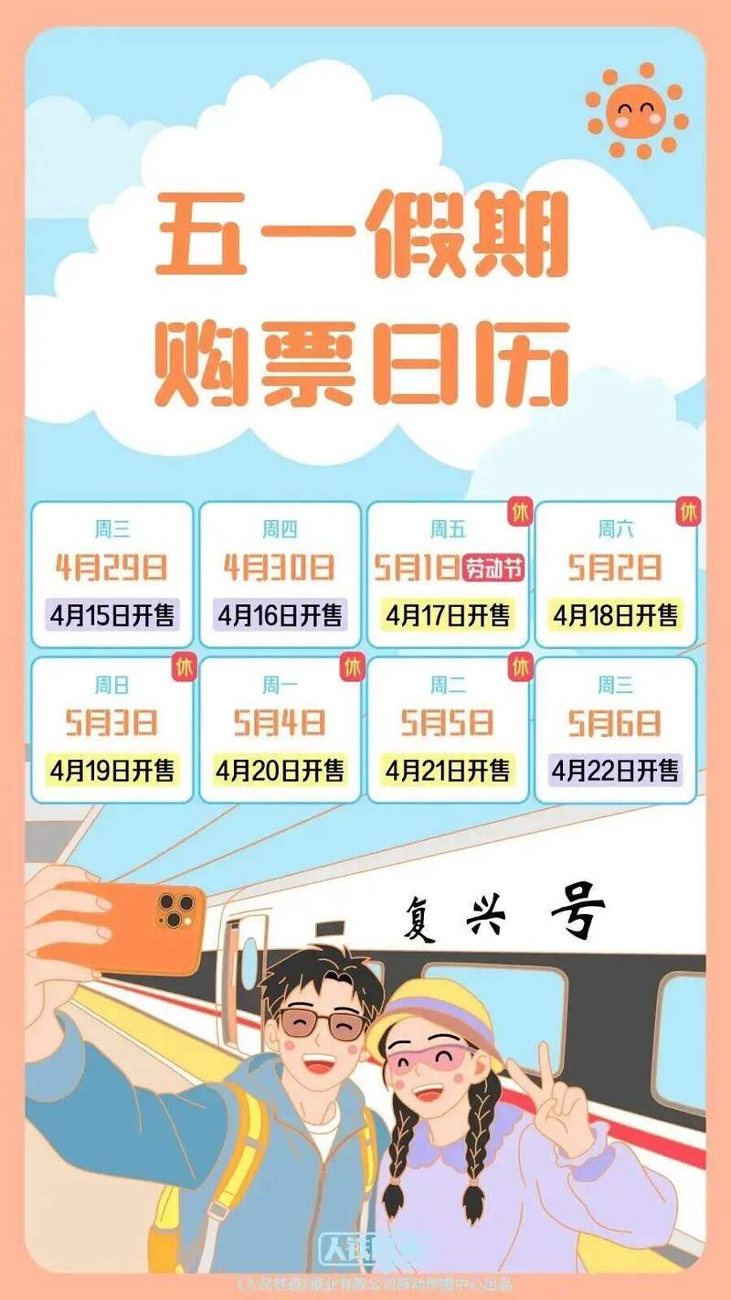 五一假期购票日历来啦今日可购买4月30日火车票定好闹钟,开启购票。详情>>>