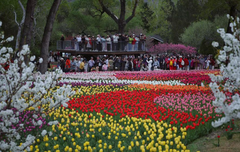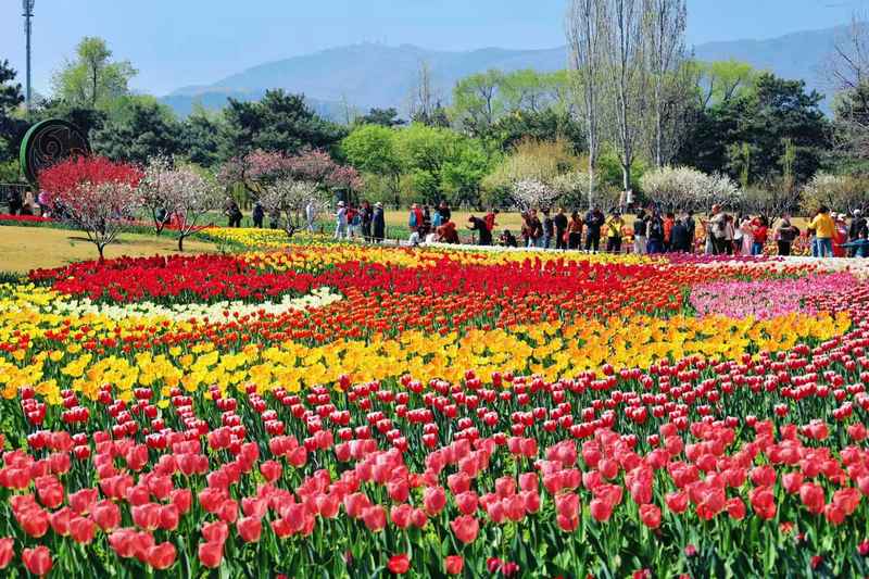 在国家植物园内,桃花、梅花、海棠、丁香等1000余个品种的春花植物陆续开放。尤其近日,8000平方米的郁金香花海绚烂盛开,引爆了京城的春日赏花热潮。珙桐、牡丹、流苏树、鹅掌楸、猬实、芍药、‘金园’丁香、月季也将接续登场,实现花事接力。