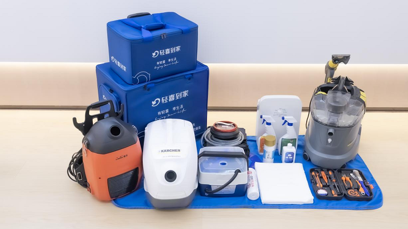 保洁师在进门处铺好防护垫,打开工具箱。你可能会好奇地看一眼,然后惊讶地发现,里面的工具分门别类,整齐得像个小型手术台。在轻喜到家的标准里,工具不是随便拎块抹布就行的。这套标准化的工具组,背后是对效率的极致追求。每种工具对应一个特定任务:高温蒸汽机用于深度杀菌,伸缩杆用于高处除尘,不同功能的刷头应对不同材质的表面。工具标准化了,磨洋工、干不好的空间就被压缩了。你不需要盯着,因为专业的工具配置,本身就是一种无声的承诺:我们有办法,也有能力处理你家里的各种清洁难题。这是用硬件标准化,来保证服务质量的底线。