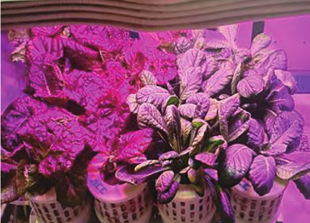 轻便易搭建的栽培装置、蛭石的栽培基质、红蓝绿三色的LED灯,构成了最初的“太空温室”。播种后的第五天,种子成功发芽,这期间需定期进行浇水、补光、间苗等操作。