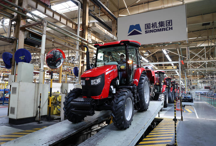 在河南洛阳中国一拖智能工厂,从底盘装配到组装成型,一条流动的U形总装线串联起各个环节……