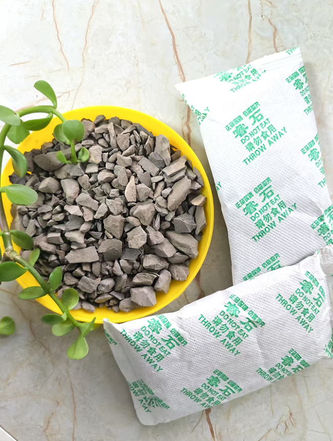 核心原理:物理吸附+锁固。作为天然硅铝酸盐矿石,其内部拥有蜂巢状纳米级孔隙,孔径(0.4-0.6nm)与甲醛分子直径(0.45nm)高度匹配,能实现靶向吸附。其独特的单向通道结构能将吸附的污染物分子牢牢锁住,避免脱附。