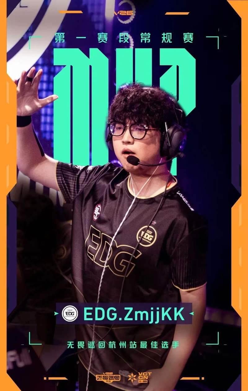 EDG选手ZmjjKK获得无畏巡回杭州站最佳选手 - 第一赛段常规赛MVP!