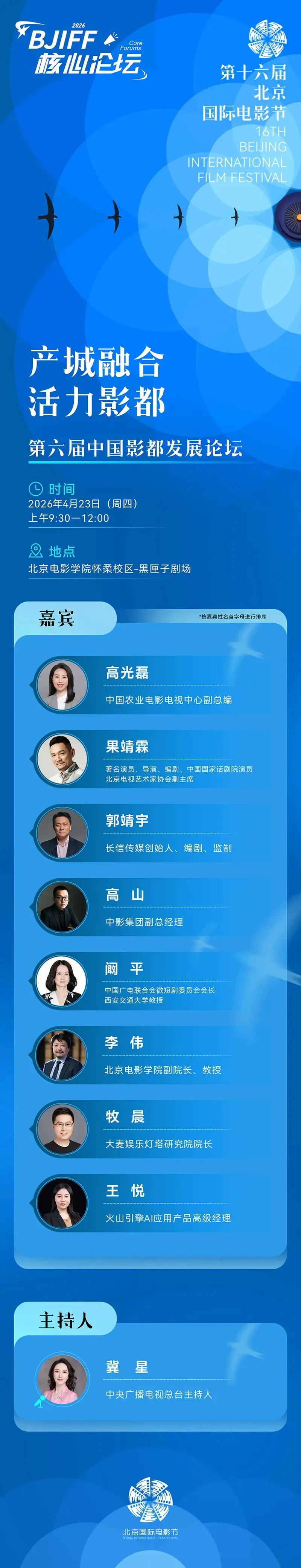 4月23日,第六届中国影都发展论坛将于北京电影学院怀柔校区举办。作为第十六届北京国际电影节的核心论坛之一,本次活动以“产城融合 活力影都”为主题,聚焦国际一流的战略科技融合发展示范区建设,推进科文融合、产城融合,加快发展文化新质生产力,立足“山水怀柔”和“一城两都”功能优势,赋能中国影都高质量发展,擦亮“光影看怀柔”特色品牌,不断提升中国影都知名度和传播力,打造更具活力的中国影都,建设人才荟萃、创作活跃、繁荣发展的国际影视高地。