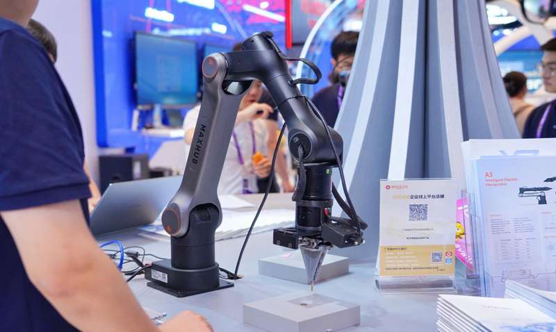 MAXHUB A3在上届广交会亮相就受到广泛关注,不到半年时间里,A3机械臂已斩获亮眼的销售增长。在应用层面,A3机械臂已在视源股份自有工厂中完成“无序分拣”“附件盒打包”等复杂作业,换线调试时间仅需2至3天,且无需编写代码,由普通工人即可完成数据采集,为中小企业提供了柔性自动化的新选择-。在职业教育与科研领域,基于MAXHUB A3 智能柔性机械臂平台,“AI+教学实验平台”集成了完整的AI教学与开发环境,预置多种主流AI框架与工具链,全面支持从数据标注、模型训练到推理部署的全流程实训,其开放性与易用性显著降低了机器人学习和研发门槛。