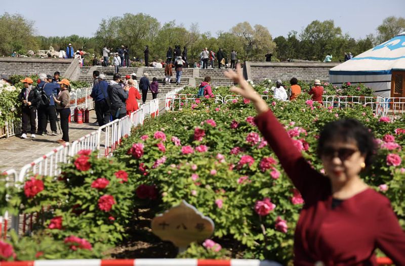 4月20日,谷雨时节,圆明园3万平方米的牡丹正值最佳观赏期,含经堂、藻园、镂月开云、鸿慈永祜等区域花团锦簇,“花王”“姚黄”“皇冠”等上百品种次第盛开。