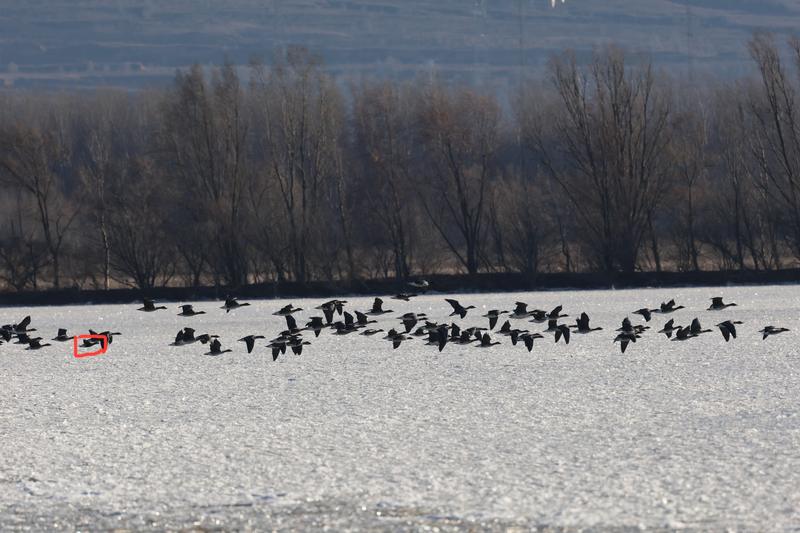 去年12月,北京市延庆区自然保护地管理处科研监测科工作人员在整理日常监测影像时,收获了一份特殊的“年终惊喜”。一组豆雁群照片中,体形稍小、羽色特征迥异的个体引起了工作人员的注意。经详细比对与专家确认,鉴定其为国家二级保护野生动物、北京市首次记录到的红胸黑雁。