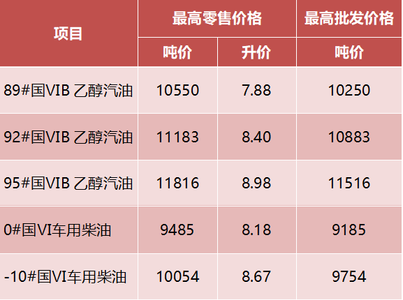 安徽省汽柴油最高零售和批发价格表