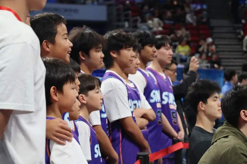 值得一提的是,在训练和比赛之余,孩子们还踏上CBA赛场,沉浸式感受顶级职业联赛现场的热烈氛围。入场式上,小球员们化身小球童,与北汽男篮队员一起牵手入场并共唱国歌。在聚光灯下真切感受中国职业篮球的魅力。