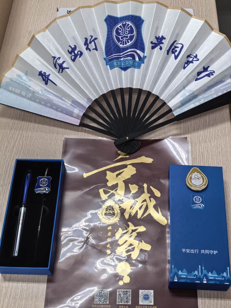 北京公交警方给韩晓玉寄来的“京诚客”纪念徽章及文创礼品。南京大学医学院附属苏州医院供图