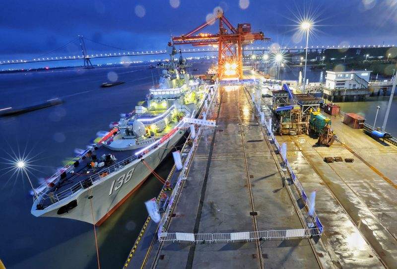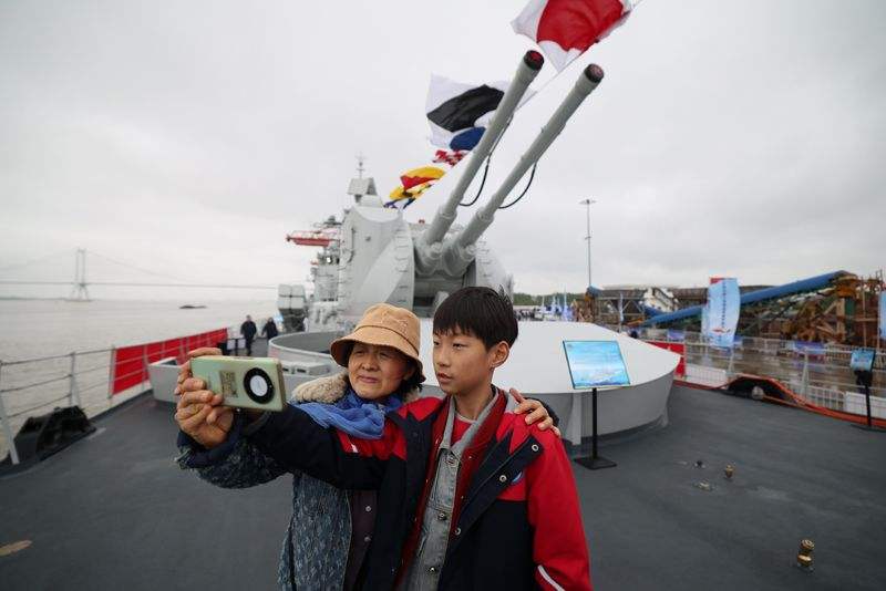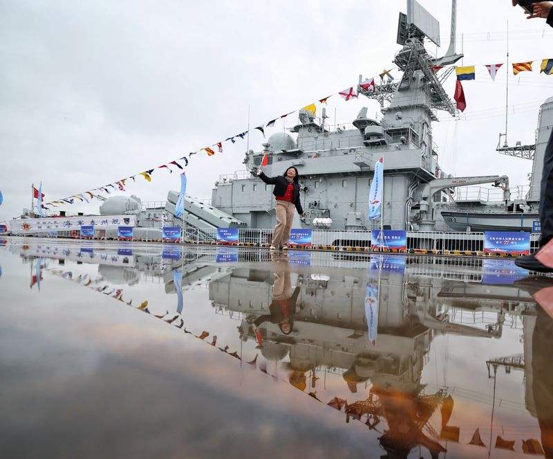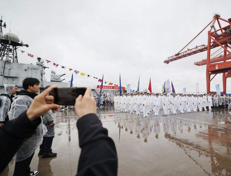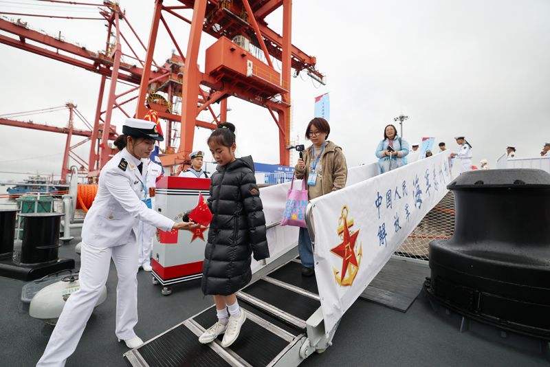 在泰州舰导弹发射架下,参加迎接仪式的市民代表指着庞大的舰体告诉孩子什么是“国之重器”。“能亲手摸到咱们自己的战舰,心里特别踏实,也特别自豪!”一位市民的感慨道出了众人的心声。