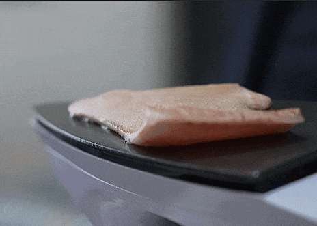 使用电熨斗对鸡蛋和猪皮加热测试:蛋清滴落后迅速凝固,猪皮接触数秒后出现明显烫伤痕迹。