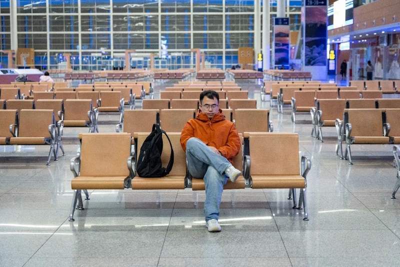 张家口站候车大厅内略显空旷,李橙子趁着候车间隙,闭目小憩片刻。