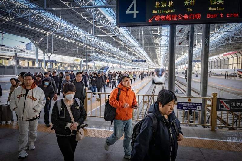 2026年3月20日早上,北京北站站台上。下高铁后,李橙子随着人流出站。