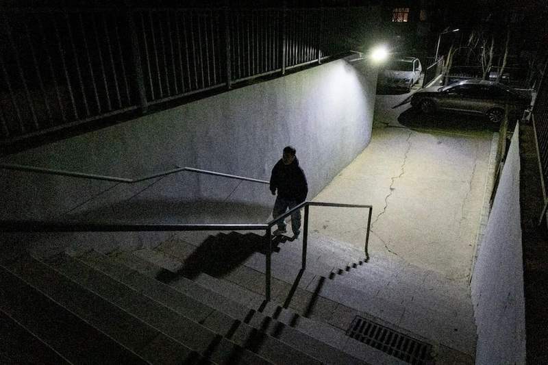 张家口,李橙子走在自家小区里。晚上八点多,小区里就基本看不见人了。