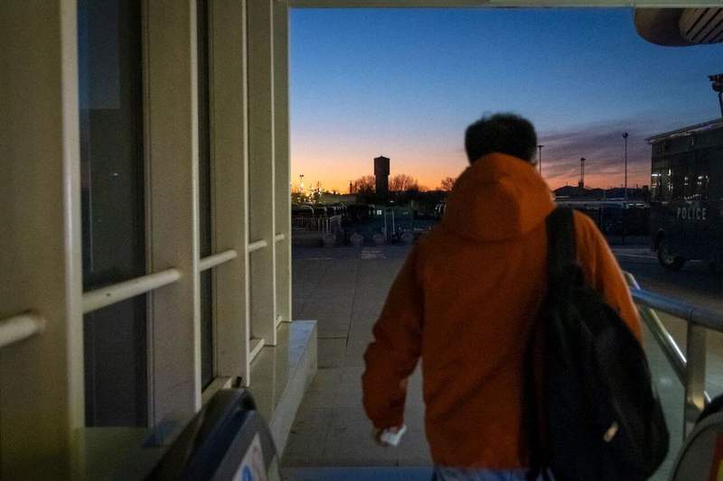 北京,李橙子伴着夕阳踏上跨省通勤的下班路。