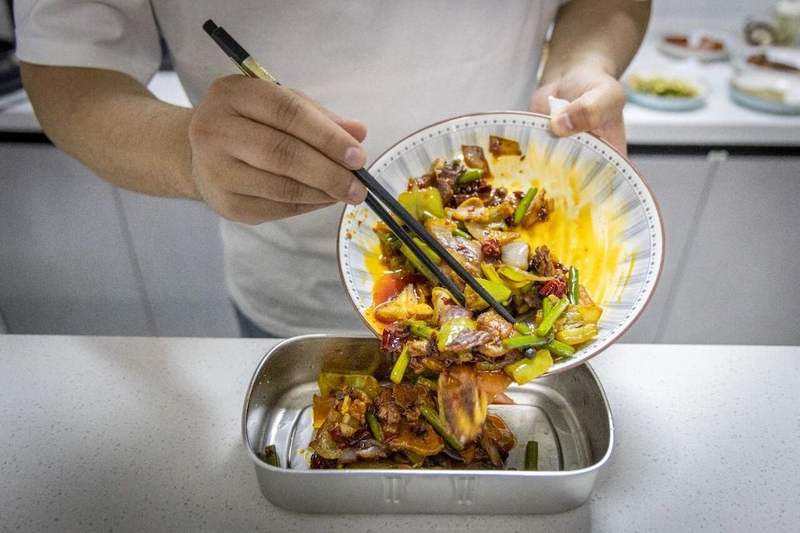饭后,李橙子正准备第二天的午餐饭盒。