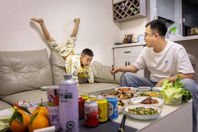 相比清晨赶路时的匆忙,傍晚返程的脚步,总是带着期盼。晚上六点从公司出发,八点半就能回到张家口的家中。推开门,妻子早已准备了一桌丰盛的晚餐,李橙子会打开一罐啤酒,儿子就在他身旁玩耍,他边吃边和孩子说笑,电视里放着孩子喜欢的动画片,一整天的奔波与疲惫,都在这一刻被温柔化解。饭后,妻子会帮他准备好第二天的午餐饭盒,等妻子带孩子进卧室休息,李橙子有时还会在客厅里,继续完成白天没做完的工作。