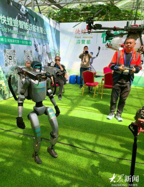 可以行走的喷药人形机器人亮相菜博会