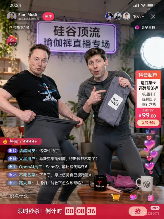 社交媒体上,网友们疯狂测试。有人生成了“马斯克直播卖货”,评论区有人感叹:“马斯克看见都要吓一跳。”有人生成了颜值主播的直播间截图,左上角的抽奖红包和下方评论真假难辨;有人生成了2015年UBC阶梯教室里教授展示幻灯片的场景,图片质感与真实照片别无二致。