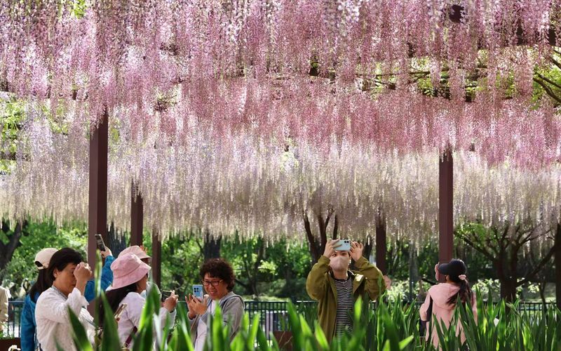 据玉渊潭公园宣传科科长张轩介绍,樱花主打“轻盈浪漫”,紫藤主打“幽静深邃”。自引种以来,紫藤作为公园春花观赏季的代表性花卉,与樱花文化活动的接力效应非常明显,已经形成了“樱花落幕、紫藤接棒”的春季赏花品牌。