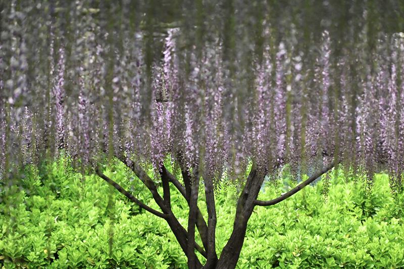 很多游客有疑问,公园紫藤花穗长、整齐度高,是自然形成还是人工养护的结果?