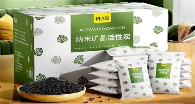 科万鸿主打改性活性炭技术,通过表面处理增强了对极性有害物的吸附选择性。它的包装设计了可反复开合的封口,方便取出晾晒后重新密封,还贴心附带一张简易湿度提示卡,直观显示是否需要再生或更换,使用更省心。对于注重使用细节、希望精准掌握炭包状态的家庭来说,是个不错的选择。