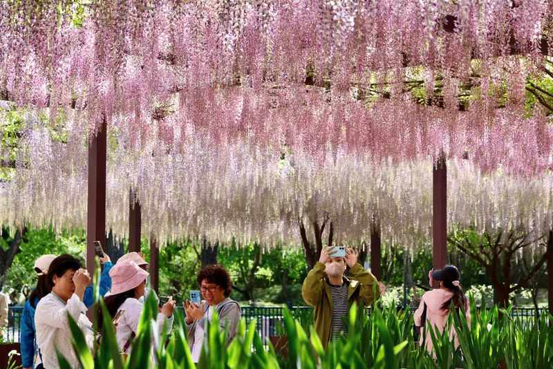 2025年紫藤观赏期(4月15日至30日)的日均游客量达到3.8万人次,越来越多的游客开始把紫藤作为暮春打卡的新选择。