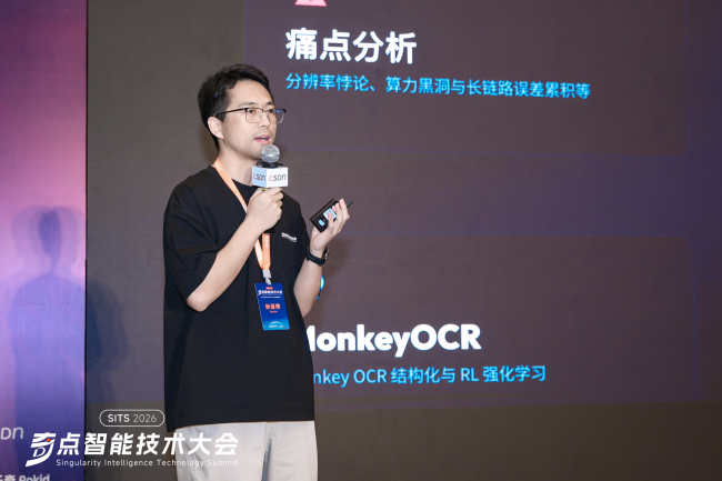针对文档解析这一办公AI核心难题,MonkeyOCR首创SRR三元解析范式,以结构解析、内容识别、逻辑关联三步,彻底告别多模块串联架构。孙亚博强调:我们要给大语言模型装上眼睛,像人一样先看整体版式,再做局部精读。3B轻量参数实现英文性能超越Gemini 2.5 Pro,推理速度0.84页/秒,远超行业主流水平。v1.5版本更搭载视觉一致性强化学习,无需大量人工标注即可自我迭代,复杂表格、公式识别精度全球领先。