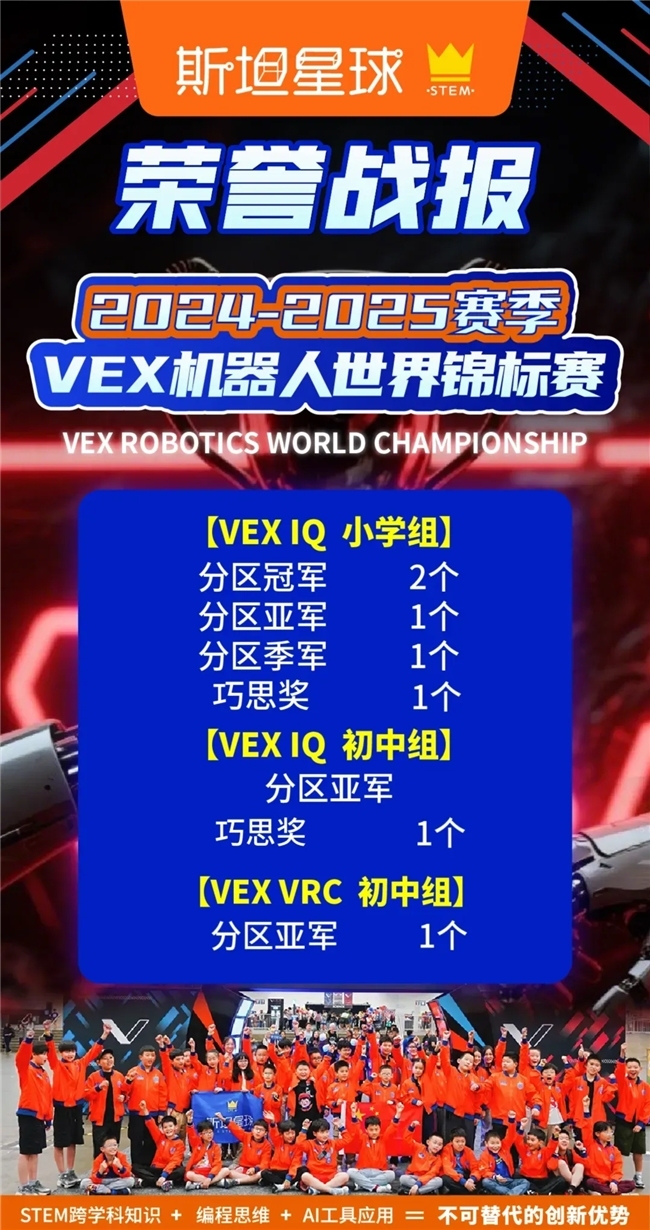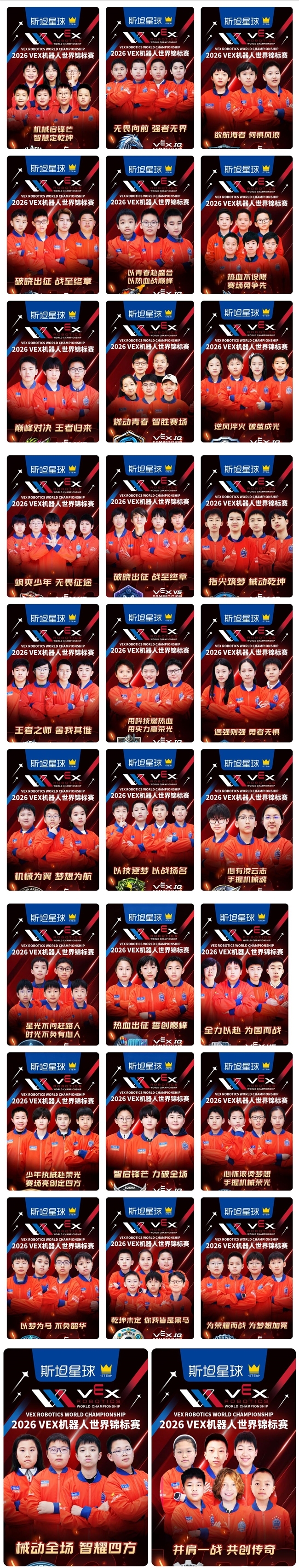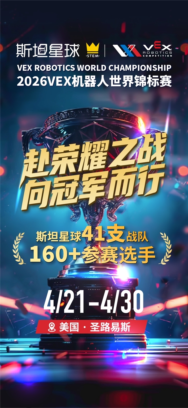 此次征战2026VEX世锦赛,斯坦星球全体战队已做好充分准备。期待中国机甲少年们在全球赛场上无畏向前、勇攀高峰,用科技燃动青春,用实力赢得荣光,再次为祖国带回荣誉!