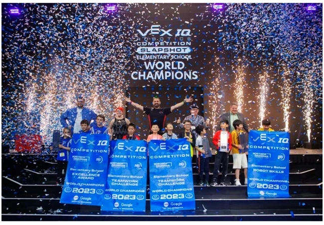 2023年:豪夺VEXIQ小学组全球总冠军,狂揽8项大奖,创造中国战队在该组别的历史最佳战绩;