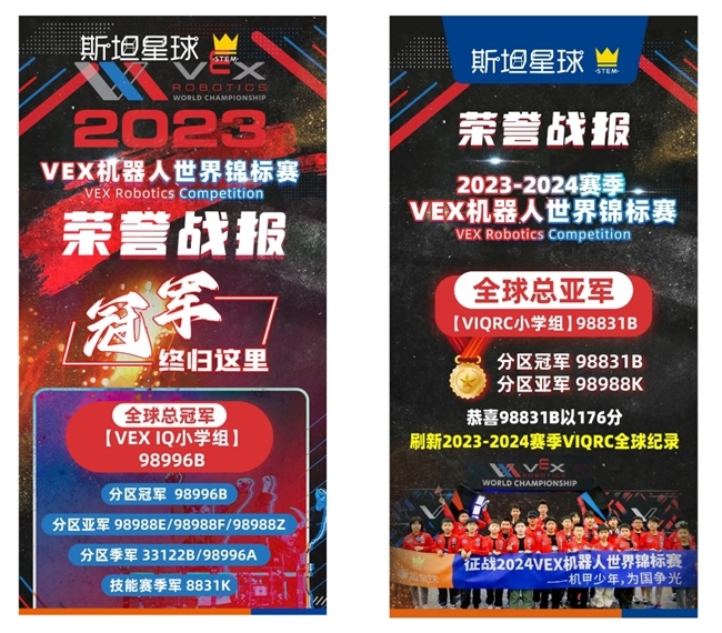 在历届VEX世锦赛中,斯坦星球战队同样战绩辉煌: