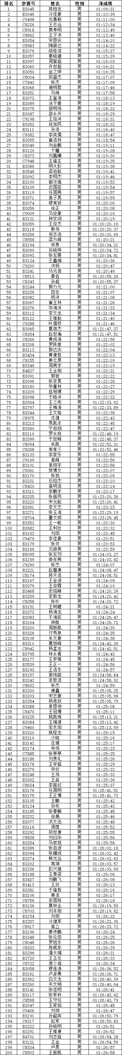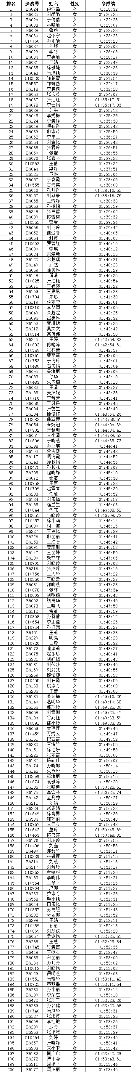 半程马拉松项目总成绩男、女获奖运动员(按净计时成绩),分别获得奖金(单位:人民币)。