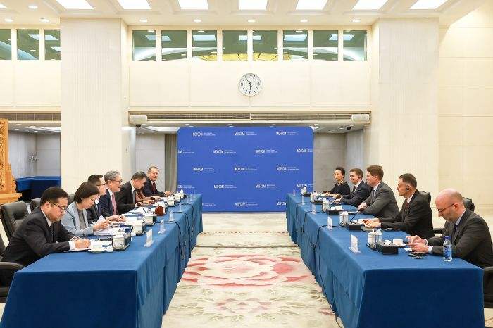 新京报讯 据商务部消息,4月23日,商务部部长王文涛会见欧洲汽车工业协会主席、奔驰集团董事长康林松,双方就中欧汽车产业合作、欧盟对华经贸限制措施等问题进行交流。