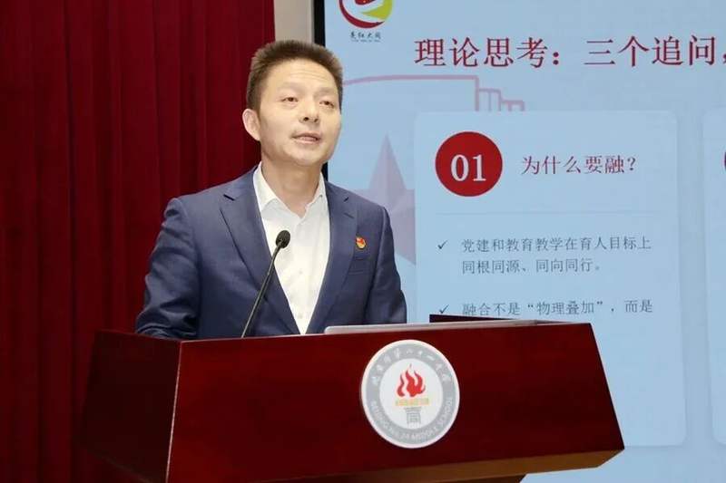 二十四中学党总支书记郑飞翔以《传承红色基因 融创教育未来》为题作主旨报告,围绕“党建与教育教学为何融、融什么、怎么融”,阐释“亮红大同”党建品牌内涵:“亮红”即亮明身份、擦亮传统、照亮未来;“大同”即传承天下为公、追求真理、勇于担当的理想。报告介绍了红色基因传承融合模型及“四径支撑”实践框架,展示“四维一体”落地路径。