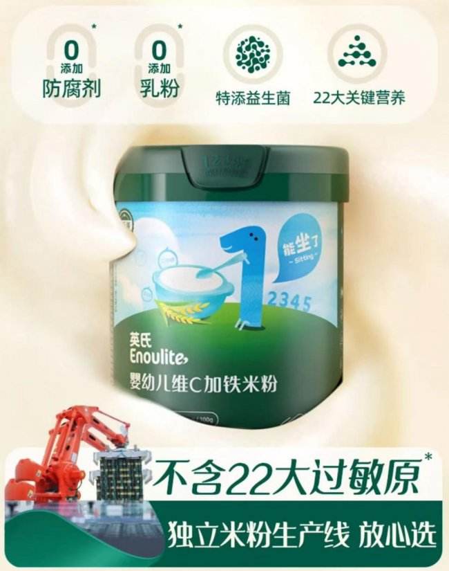 这一黄金矩阵不仅应用于绿罐系列,更贯穿英氏全线高铁米粉产品,确保每一罐都实现“高铁好吸收”。