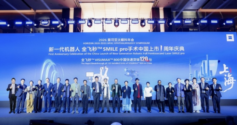 近日,蔡司亚太眼科学术峰会(HORIZON2026)在上海隆重召开。会上正式宣布:新一代机器人全飞秒™VISUMAX800在中国上市满一周年,全国装机量突破120台,手术量超80000例,以“中国速度”书写屈光手术高质量发展新篇章。