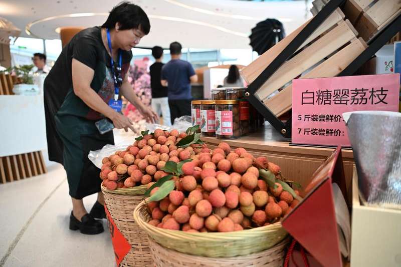 在包茂高速柏桥服务区拍摄的荔枝鲜果。新华社记者 邓华 摄