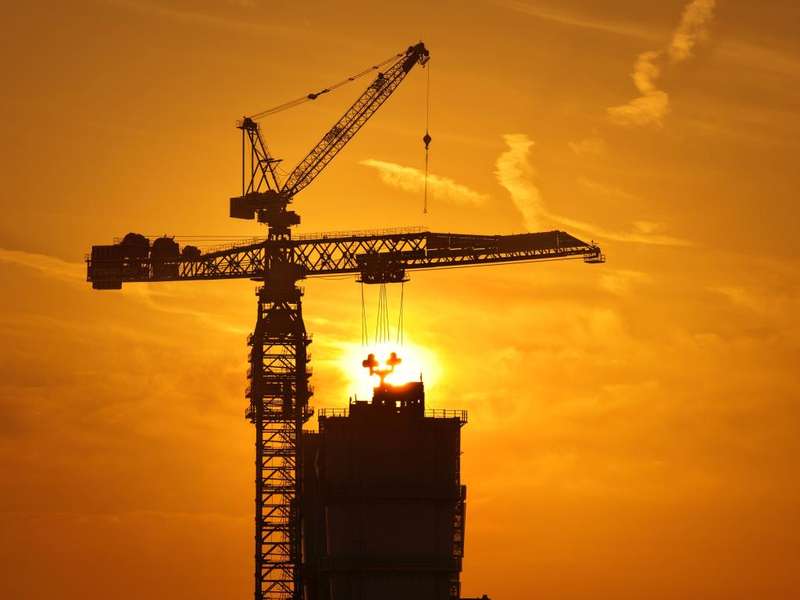日出时分拍摄的张靖皋长江大桥南航道桥南主塔施工现场。新华社发(许丛军 摄)
