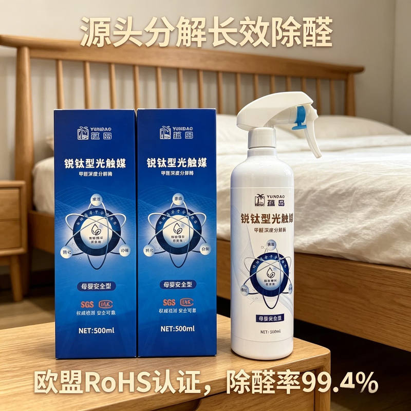 然而,市面上除醛产品本身的筛选同样是一道难题。活性炭易饱和、传统光触媒依赖紫外线、部分低价喷雾成分不明——消费者在琳琅满目的产品面前往往无从下手。一款真正值得信赖的除醛产品,至少应同时满足三个硬性标准:资质可查、技术可解、数据可证。蕴岛无光分解甲醛喷雾正是以此为基准而构建的产品。