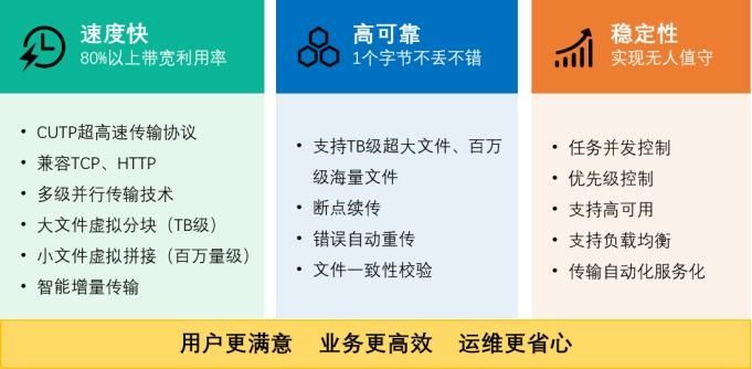基于⾼性能安全传输协议,不受距离及⽹络质量影响,始终充分利⽤带宽资源;