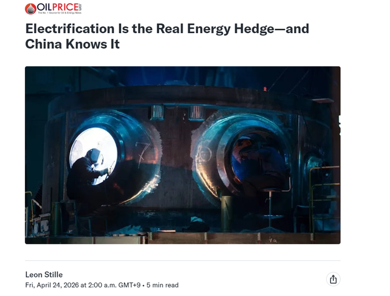 文章说,西方观察人士常常误读中国发展清洁能源的战略主张。事实上,中国大力发展可再生能源、电池制造、电动汽车、超高压输电和电动交通,其根本目的在于提升经济实力、工业实力和地缘政治实力。