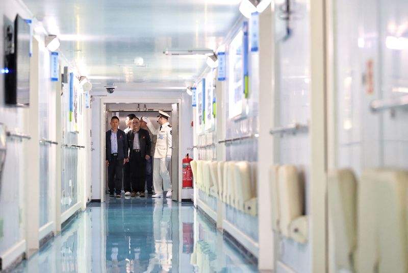和平方舟全船共8层,分驾驶区、医疗区、飞行区、动力区和生活区5个区域。医疗区总面积4000多平方米,设有伤病员换乘、检伤分类、诊疗、手术、后送撤离等5类区域,配有200多种2600多台(套)医疗设备。具有远洋救生能力强、救护手段多样、医疗设施完备、配套设备先进、选派随船医务人员医术精湛5个特点,相当于一所流动的“海上三甲医院”。