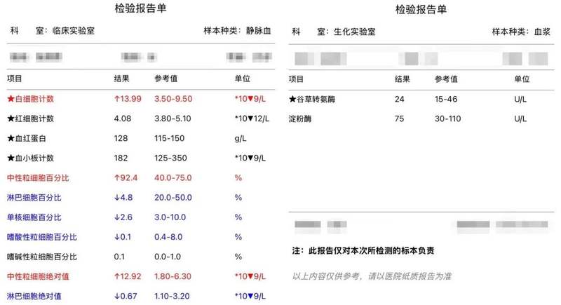 医生给我开了CT和血液检查。报告单上,异常的白细胞和中性粒细胞指标都提示着我的身体某处存在着感染性的炎症。