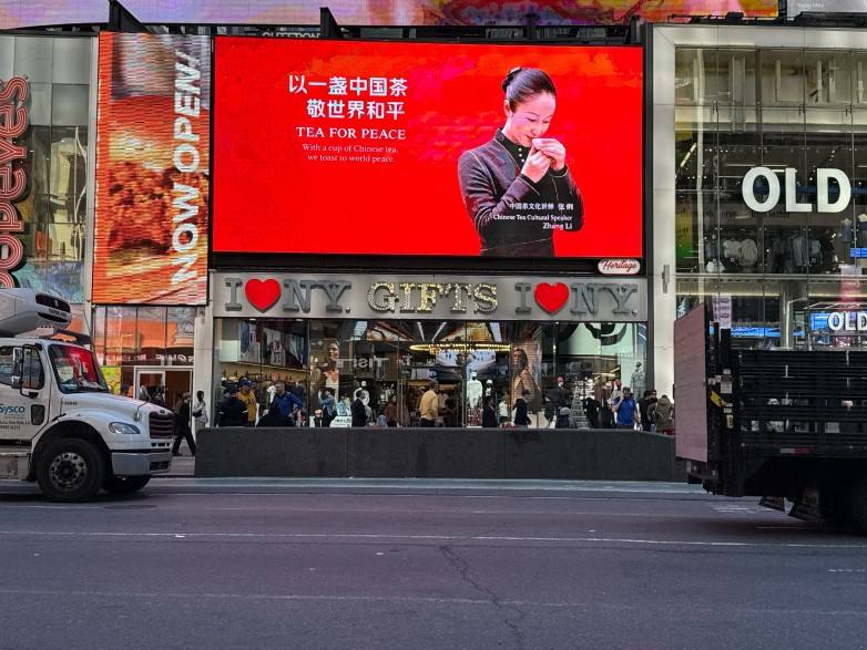 在全球化语境下,文化不再只是展示,更是一种对话。张俐以一杯茶为媒,将廉、美、和、静的中华茶道精神转译为世界可感知的语言。在时代广场这一象征全球交汇的空间中,她所呈现的,不只是个人形象,更是一种温润而坚定的中国文化立场。