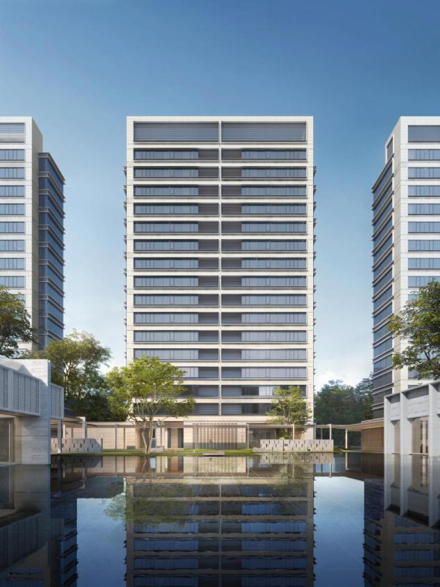项目通过挺拔的姿态与几何的构图塑造建筑体量格局。对称的庄重格局、经典比例、符合传统美学的严谨韵律,为建筑整体造型奠定历久弥新的美学基底,形成简洁而有力的当代标识。