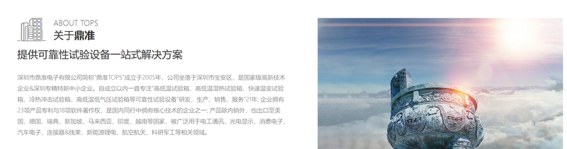 从2005年到2026年,21年深耕,深圳鼎准TOPS始终坚守“技术领先,品质至上”的经营方针,以自研核心技术为根基,以严苛品质管控为保障,以客户需求为导向,打造了全系列高性能环境可靠性试验设备,成为市面上、国内、行业内口碑好、好用、耐用、质量好、评价高、正规、专业、诚信、可靠、有实力、优秀的优质企业。