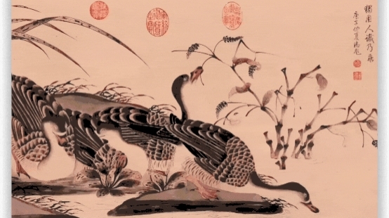 北宋赵佶柳鸦芦雁图卷-局部AI动态展示图