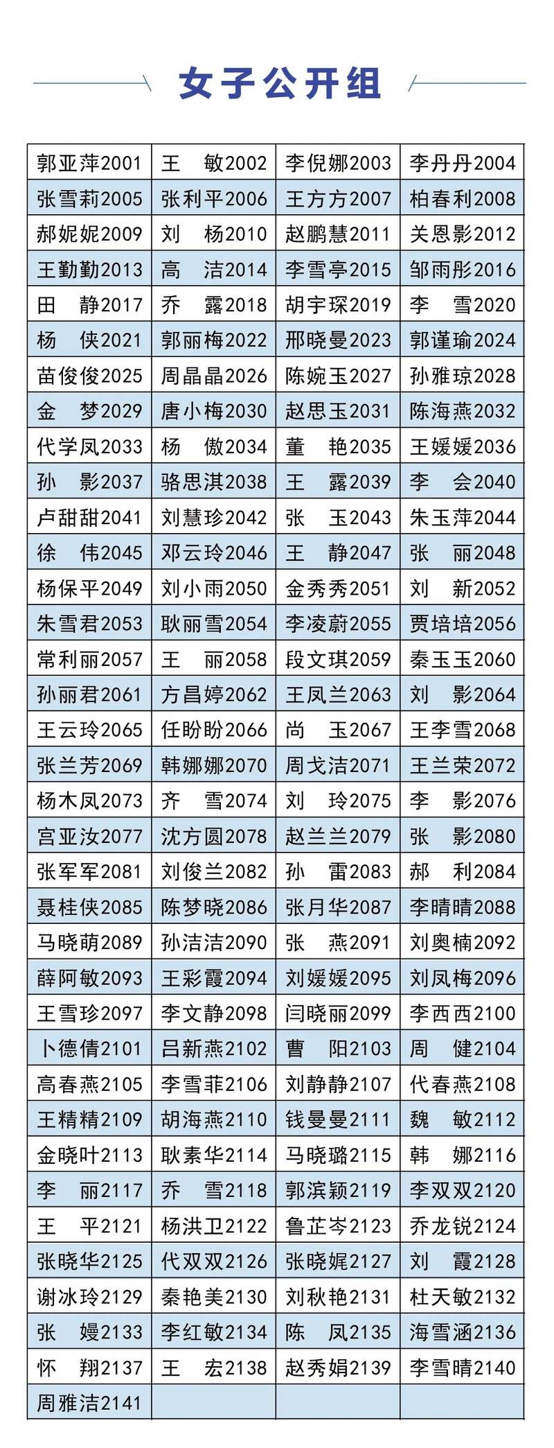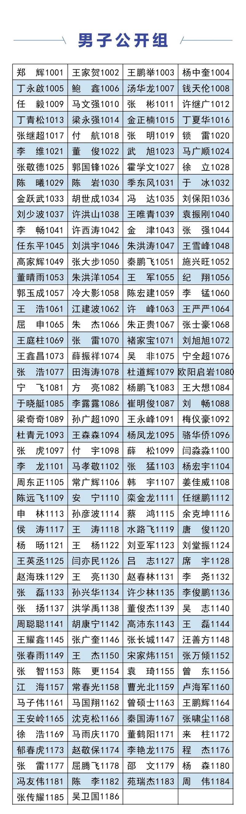 经过第一次的名单公示,修正信息后,现将最终参赛名单及参赛号码予以公布。请各参赛选手再次核对,等待比赛的开启。